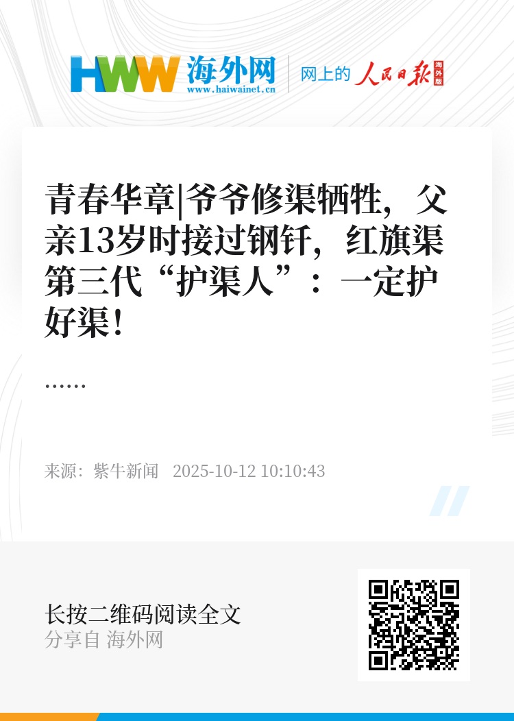 青春华章|爷爷修渠牺牲,父亲13岁时接过钢钎,红旗渠第三代“护渠人”:一定护好渠!