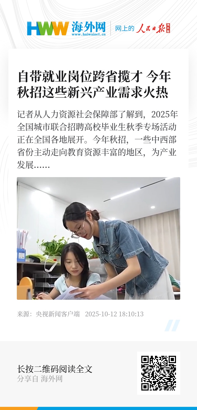 记者从人力资源社会保障部了解到,2025年全国城市联合招聘高校毕业生秋季专场活动正在全国各地展开。今年秋招,一些中西部省份主动走向教育资源丰富的地区,为产业发展招揽优质人才。