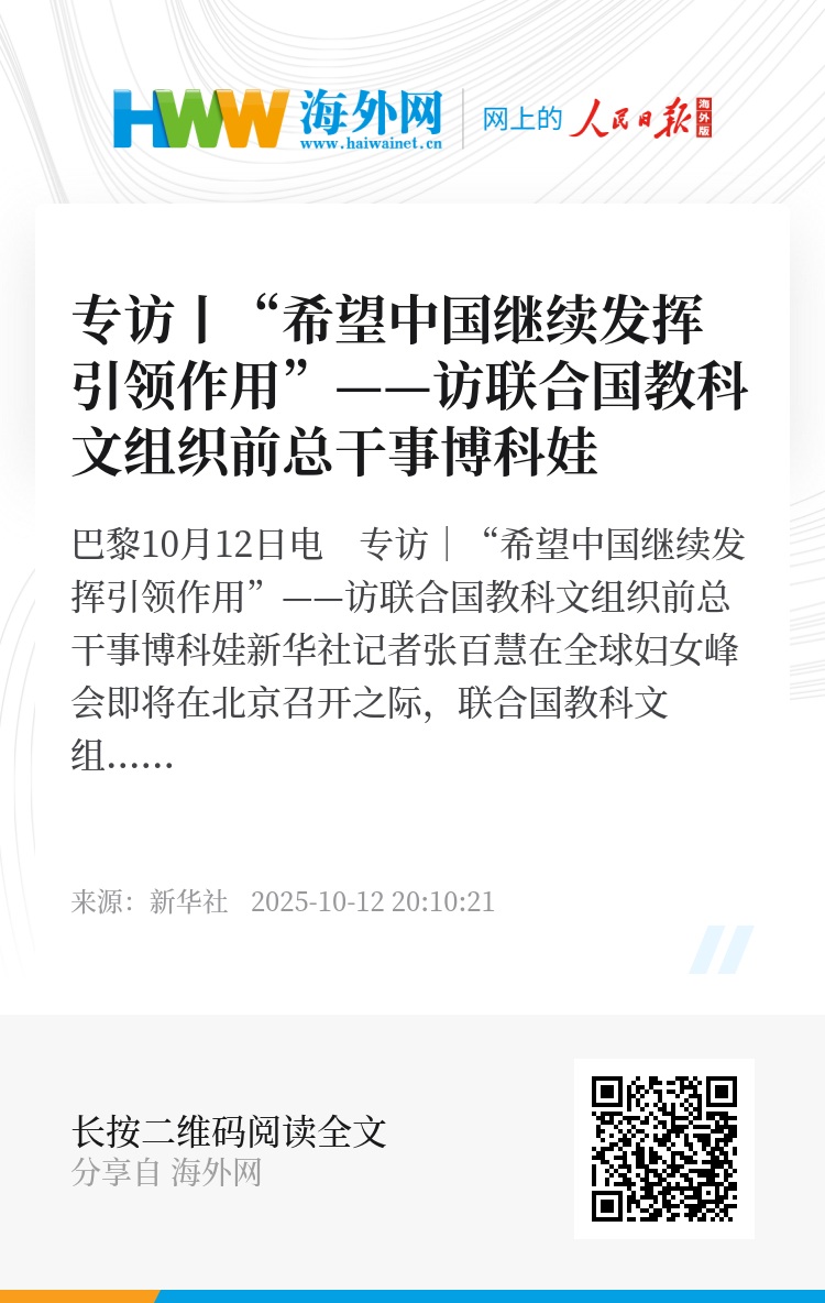 新华社巴黎10月12日电 专访|“希望中国继续发挥引领作用”——访联合国教科文组织前总干事博科娃