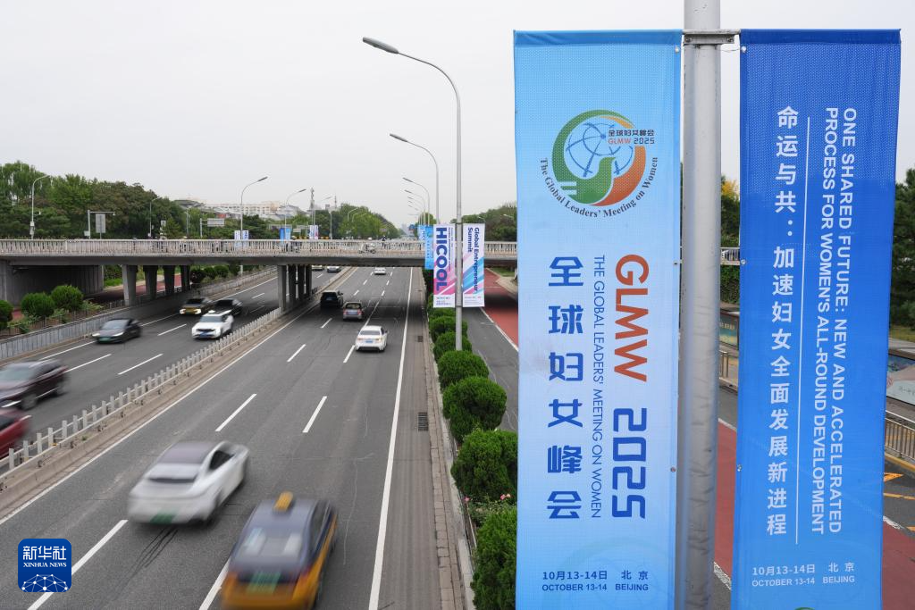 这是10月12日在北京街头拍摄的全球妇女峰会道旗。