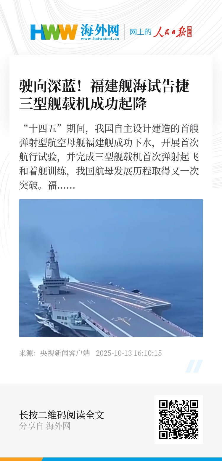 2025年9月22日,中国海军宣布,歼-15T、歼-35和空警-600三型舰载机,已于此前完成在福建舰上首次弹射起飞和着舰训练,标志着福建舰具备了电磁弹射和回收能力。