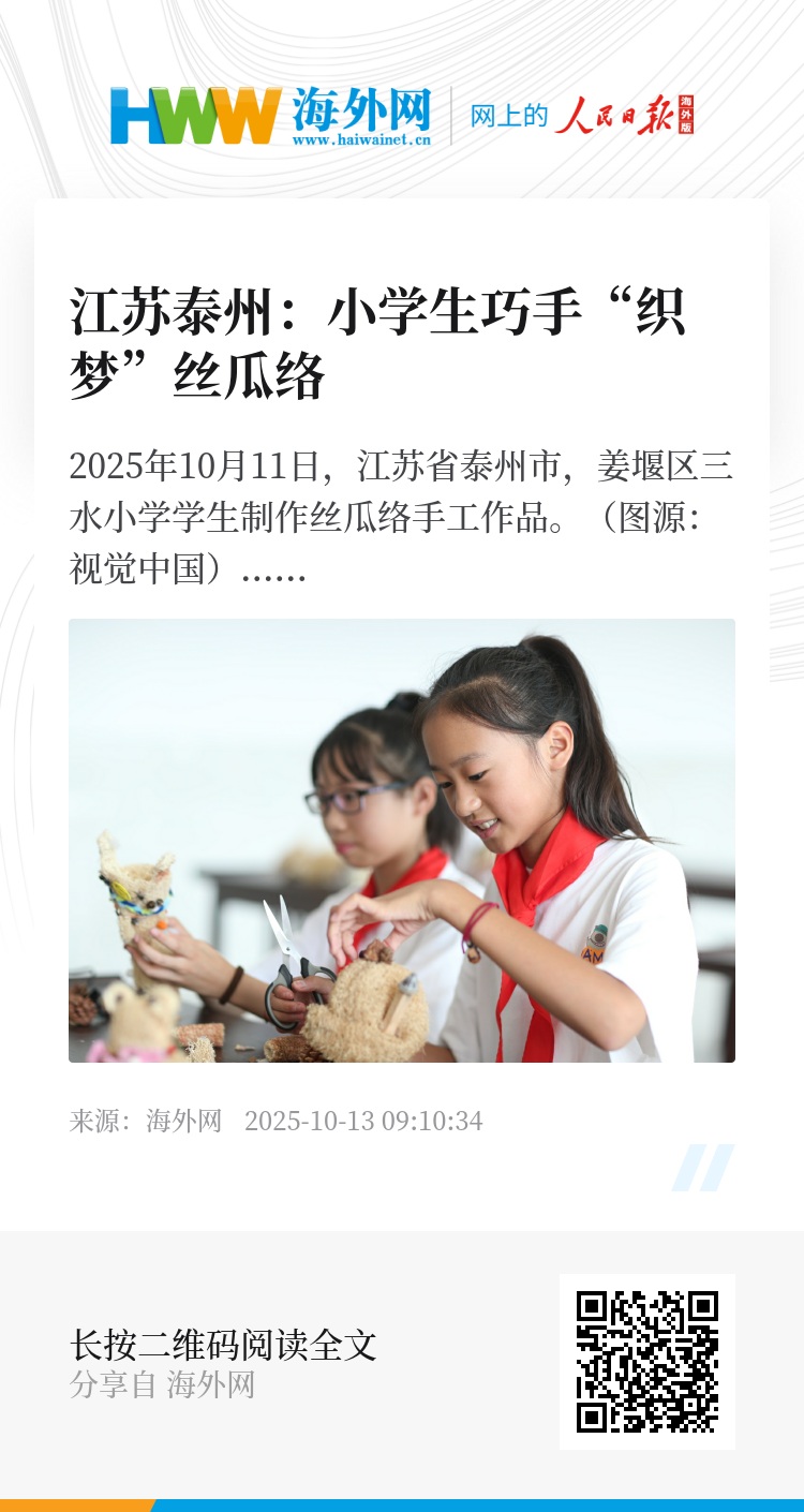 32900412,.江苏泰州:小学生巧手“织梦”丝瓜络,.2025-10-13 09:09:34,.204008,.姚凯红、高望