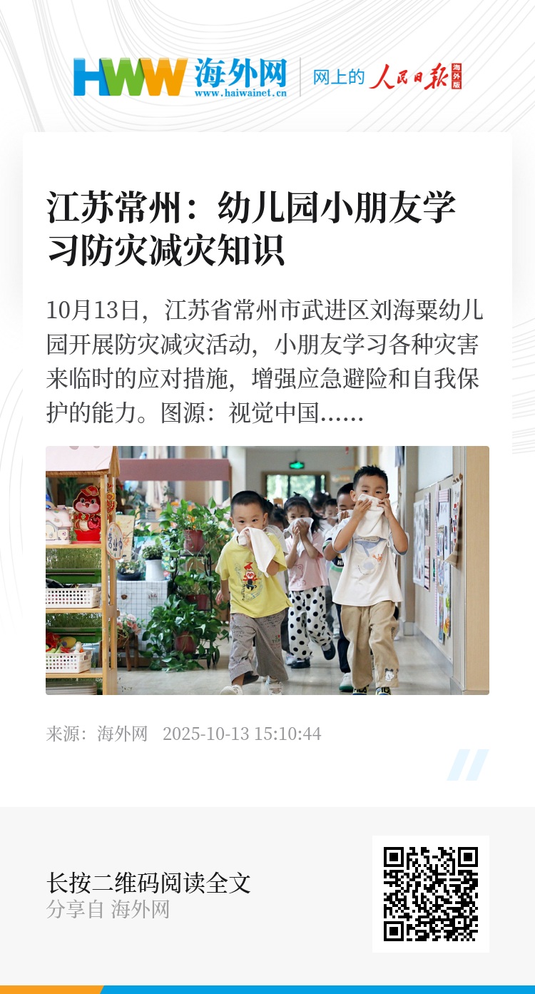 32900580,.江苏常州:幼儿园小朋友学习防灾减灾知识,.2025-10-13 15:49:44,.204441,.张荣耀、姚凯红