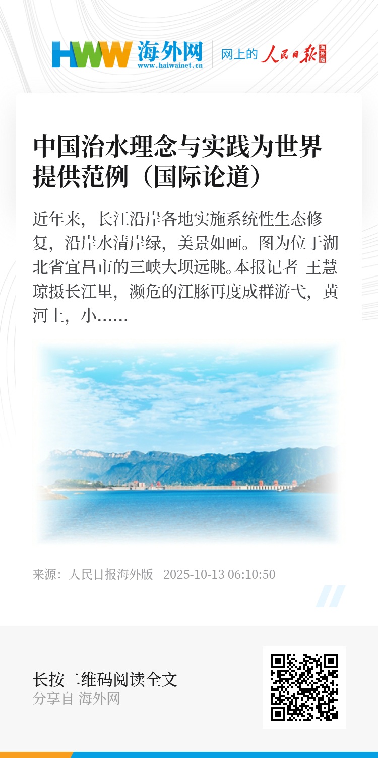 “中国积极探索将卫星数据、5G技术与地面水文监测结合,用大数据优化水资源管理,同时传承都江堰、灵渠等古代水利工程的生态理念,这种‘古为今用’的创新性做法,为全球流域治理提供了新思路。”夏泽翰说,中国将绿水青山视为“宝贵资产”,通过污染治理、再生水利用等举措,实现了发展与保护的平衡。