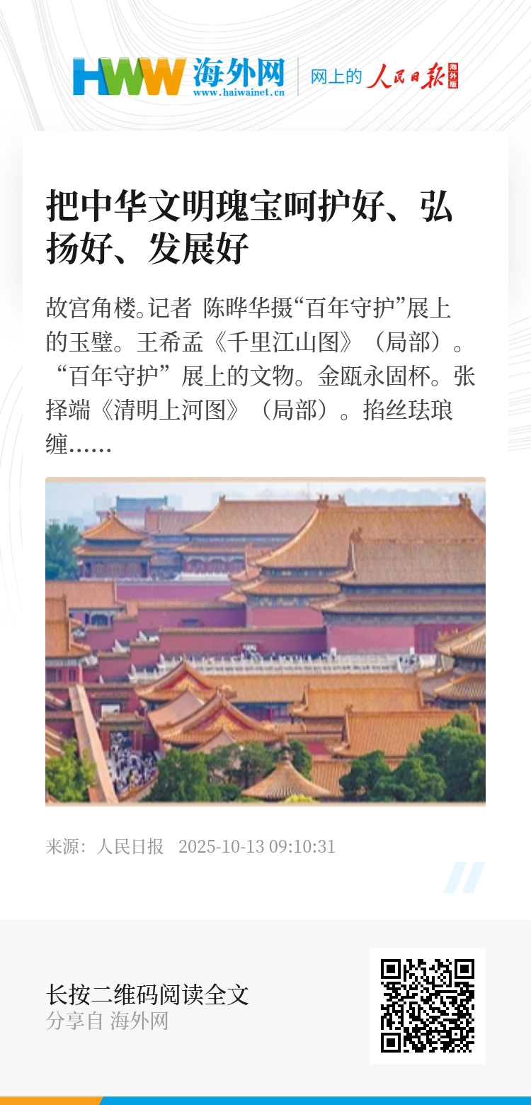 “高扬中华民族的文化主体性,把历经沧桑留下的中华文明瑰宝呵护好、弘扬好、发展好,是当代中国共产党人的历史责任和神圣使命。”从历史深处走来,向民族复兴前行,100岁的故宫博物院风华正茂。