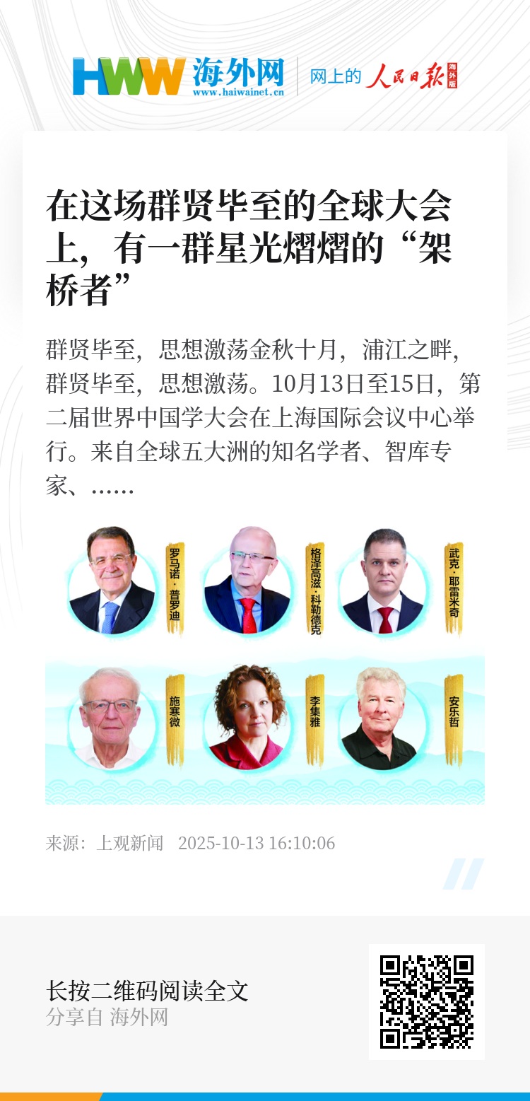 金秋十月,浦江之畔,群贤毕至,思想激荡。10月13日至15日,第二届世界中国学大会在上海国际会议中心举行。来自全球五大洲的知名学者、智库专家、文化使者等齐聚一堂,以“世界视野下的历史中国与当代中国”为主题,贯通文明脉络与现代化实践,“以学术照见中国,以中国回应世界”,共启思想交流盛宴,共绘文明互鉴图景。