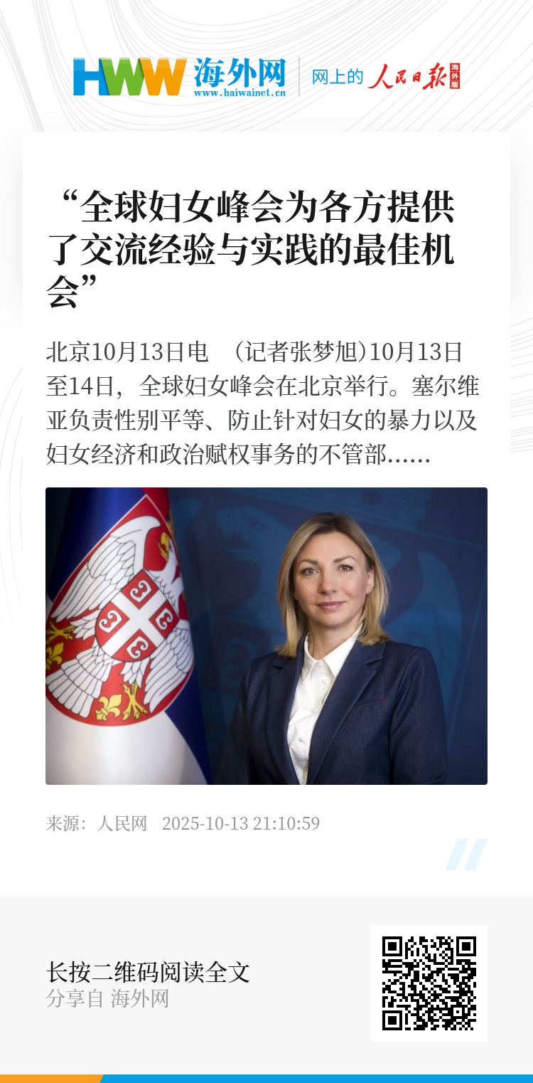 马楚拉指出,北京是30年前《北京宣言》通过的地方,体现了中方在促进妇女权利与性别平等方面的坚定承诺。她表示,此次峰会的举行意义重大,再次表明妇女议题在国际议程中始终占据重要位置。