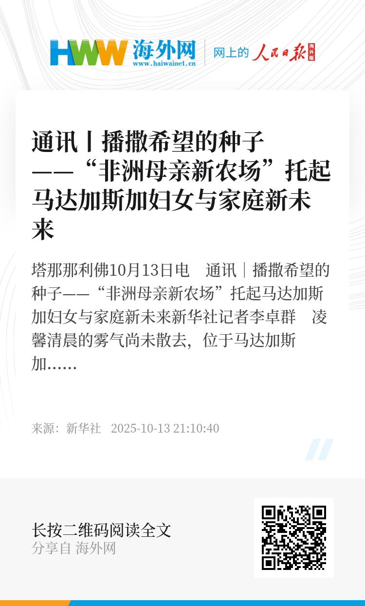 新华社塔那那利佛10月13日电 通讯|播撒希望的种子——“非洲母亲新农场”托起马达加斯加妇女与家庭新未来