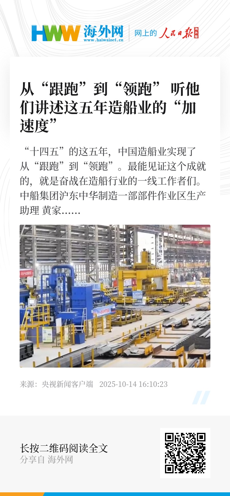 “十四五”的这五年,中国造船业实现了从“跟跑”到“领跑”。最能见证这个成就的,就是奋战在造船行业的一线工作者们。
