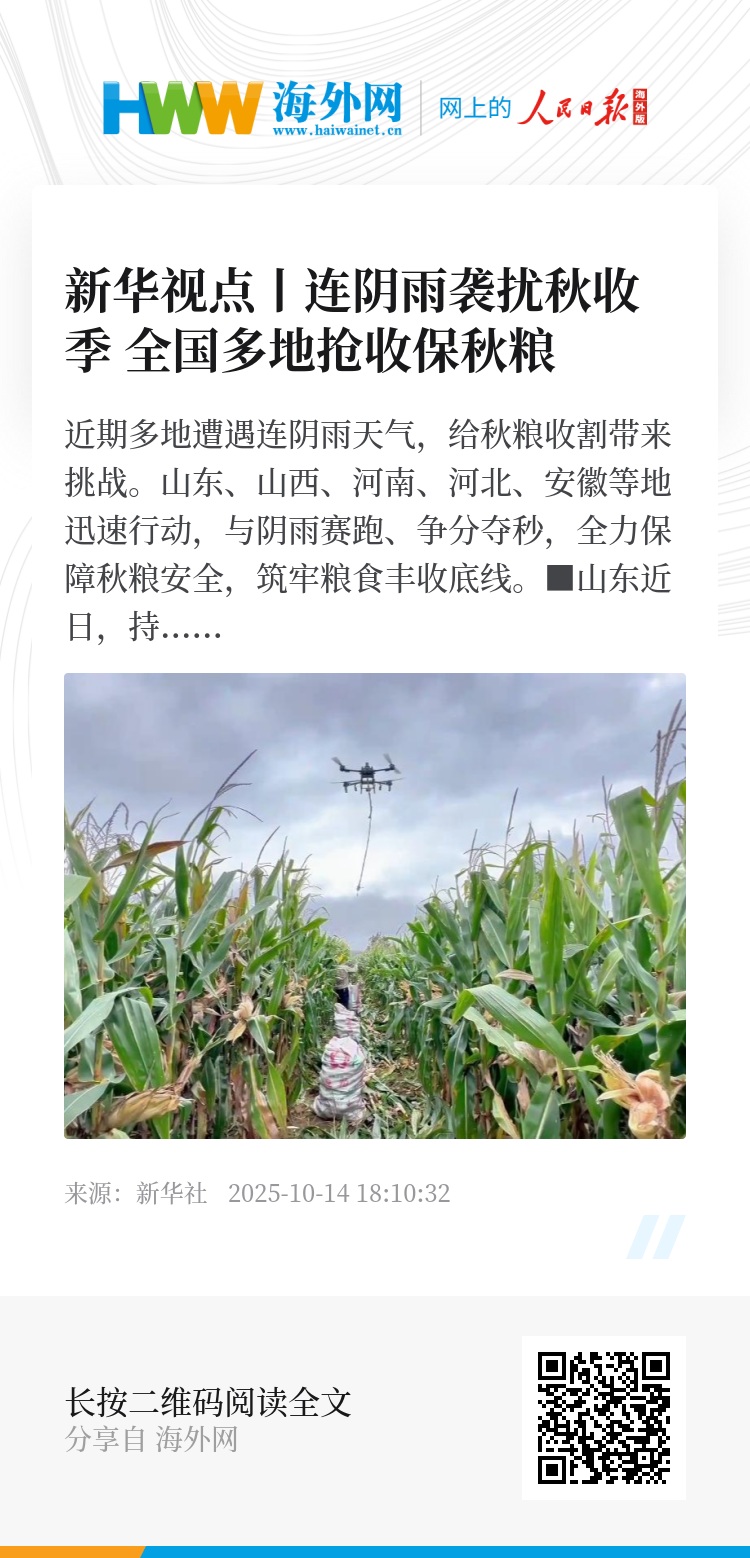 近期多地遭遇连阴雨天气,给秋粮收割带来挑战。山东、山西、河南、河北、安徽等地迅速行动,与阴雨赛跑、争分夺秒,全力保障秋粮安全,筑牢粮食丰收底线。