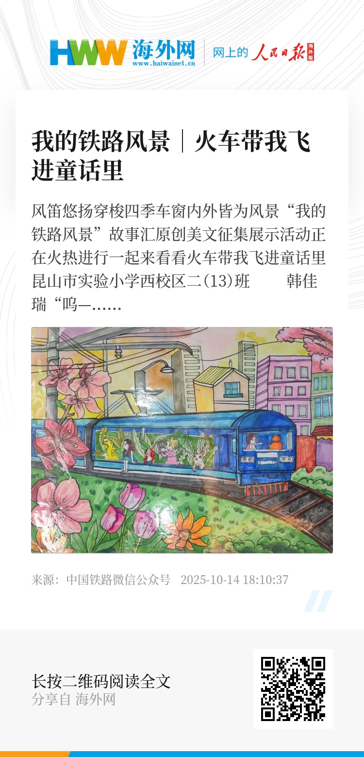 “呜——咔嚓咔嚓!”火车像一条银光闪闪的巨龙,载着我和妈妈奔向远方的外婆家。我像只小壁虎一样趴在车窗上,鼻子都快贴到玻璃上了。妈妈轻轻摸着我的头说:“铁路是地上的彩虹桥,连接着家和远方。”可我觉得,它更像一条会讲故事的魔法隧道,要把我们带进童话书里!