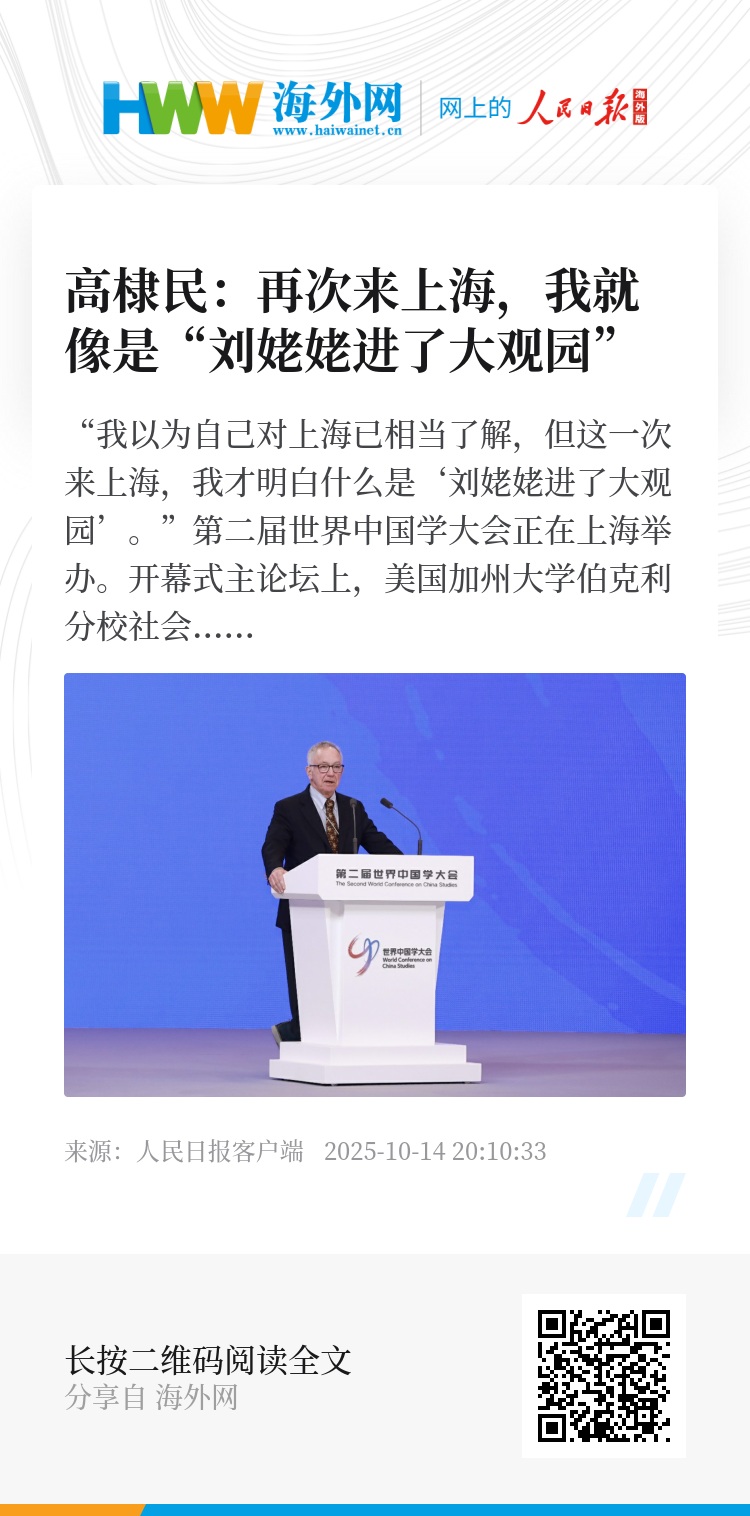 第二届世界中国学大会正在上海举办。开幕式主论坛上,美国加州大学伯克利分校社会学系荣休教授高棣民,用一口流利的中文,分享自己对中国变化的惊讶。