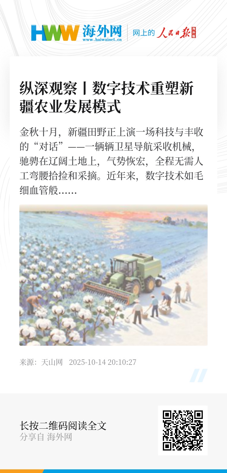 近年来,数字技术如毛细血管般渗透新疆农业肌理,智慧农场、智慧果园从概念落地田间,曾经面朝黄土背朝天的耕种管收,正被“手机点一点、农机跑一圈”的智能模式改写。