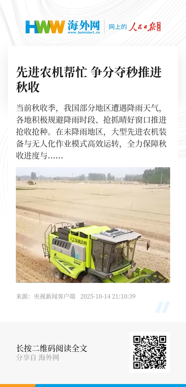 当前秋收季,我国部分地区遭遇降雨天气,各地积极规避降雨时段、抢抓晴好窗口推进抢收抢种。在未降雨地区,大型先进农机装备与无人化作业模式高效运转,全力保障秋收进度与效率。