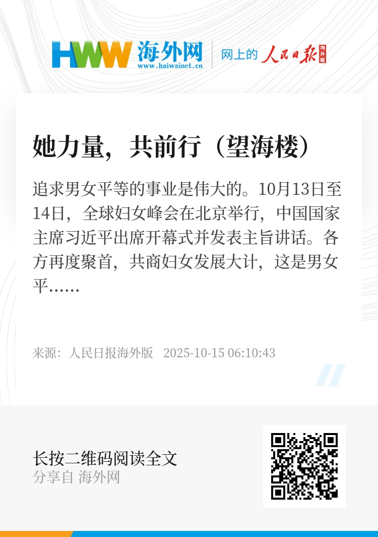 10月13日至14日,全球妇女峰会在北京举行,中国国家主席习近平出席开幕式并发表主旨讲话。各方再度聚首,共商妇女发展大计,这是男女平等事业的一件大事。