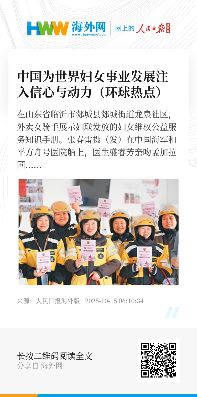 国际舆论普遍认为,中国方案的宝贵价值之一,在于将性别平等与经济社会发展紧密结合。巴西《论坛》杂志网站刊文称,中国把性别议题纳入国家发展整体框架,将性别平等与经济增长、社会福祉和政治稳定联系起来,这一模式引起全球南方国家的广泛共鸣。