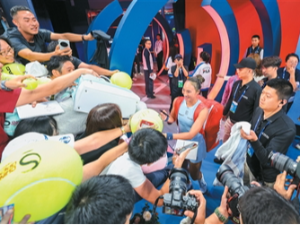 中国网球公开赛上,球员与球迷的互动同样佳话频出。被中国球迷称为“保总”的意大利球员保利尼和被叫做“大富”的美国名将佩古拉,在场外常常用这些昵称和球迷互动,用轻松、幽默的方式回应球迷的喜爱。