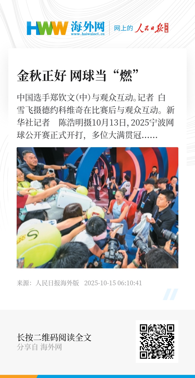 从北京、上海、广州,到武汉、成都、杭州、宁波……今年9月到11月,网球“中国赛季”如约而至。赛事密集、星光闪耀,赛场内外的网球热度持续攀升。无论是职业选手的激烈对决,还是观众席上的欢呼与掌声,这个秋天,一场场精彩的网球赛事,为中国网球热再添一把火,也让这项运动以更加开放、多元的姿态,融入城市与生活。