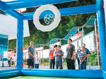 福建省科技馆“科学之夜”现场,青少年体验无人机足球。图源:福建省科技馆公众号