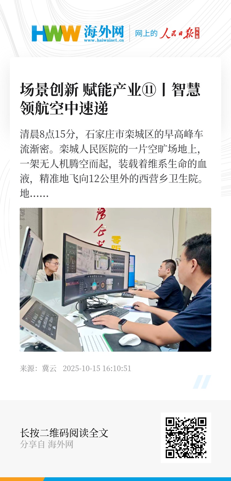 清晨8点15分,石家庄市栾城区的早高峰车流渐密。栾城人民医院的一片空旷场地上,一架无人机腾空而起,装载着维系生命的血液,精准地飞向12公里外的西营乡卫生院。地面22分钟的车程,这条空中生命通道仅用12分钟就已送达。这不是科幻电影中的场景,而是低空经济应用日常化、精细化服务社会民生的一个切片。