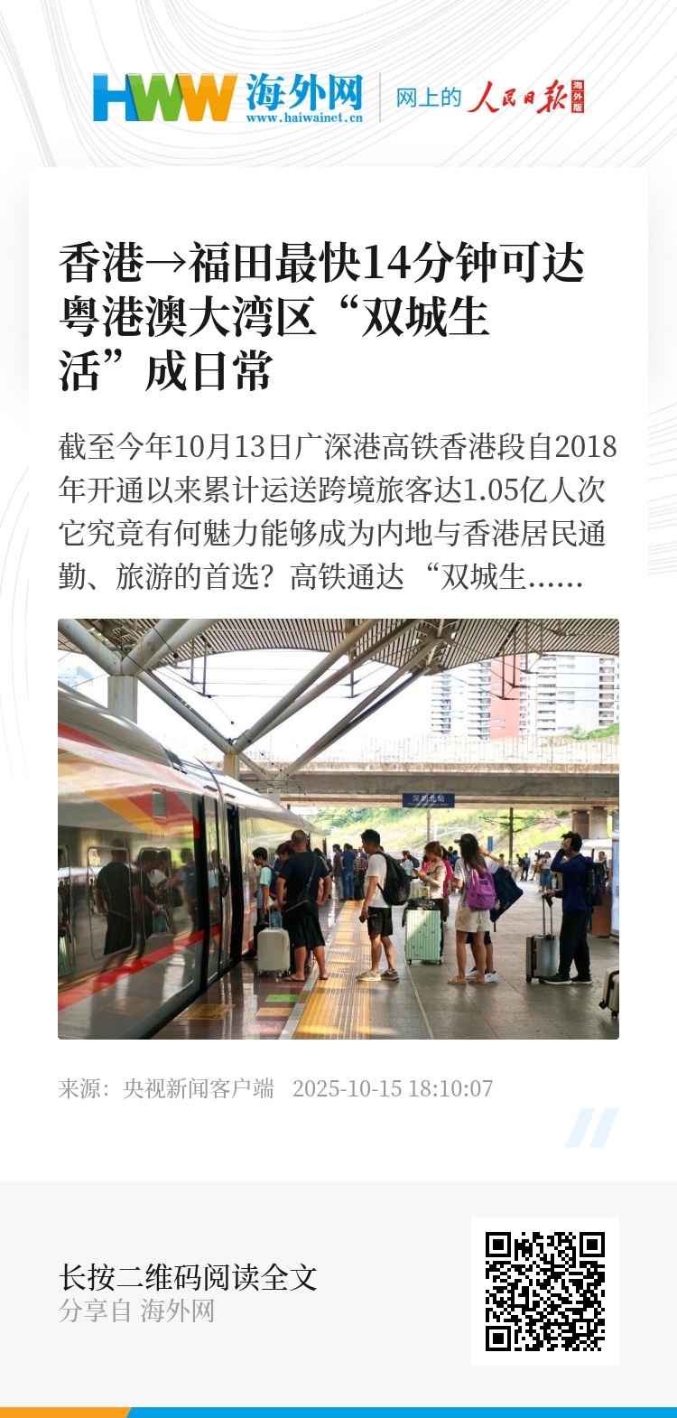 “我每天都在深圳和香港之间通勤,高铁不仅速度快,而且特别方便,真正实现了‘一小时生活圈’。”在香港工作、在深圳居住的顾先生笑着说。