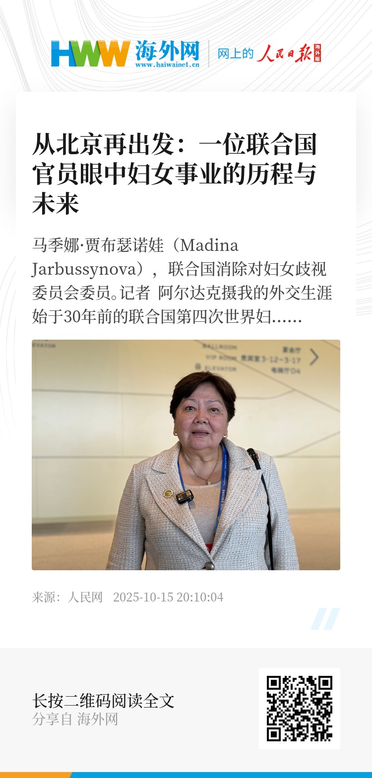 (作者马季娜·贾布瑟诺娃是联合国消除对妇女歧视委员会委员;人民网记者阿尔达克、邓洁采访整理)