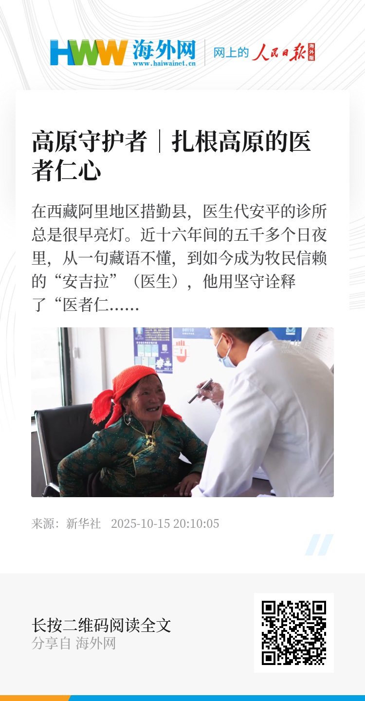 在西藏阿里地区措勤县,医生代安平的诊所总是很早亮灯。近十六年间的五千多个日夜里,从一句藏语不懂,到如今成为牧民信赖的“安吉拉”(医生),他用坚守诠释了“医者仁心”。正是无数这样的坚守,让这片土地充满生生不息的希望。