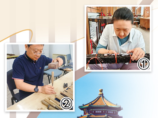 图①:文物修复师张全在固定家具雕花配件。