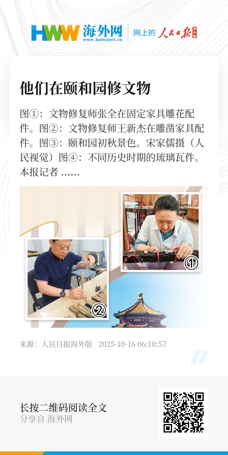 在颐和园,文物修复师们各自从自己的专业出发,保护、修复着珍贵文物。