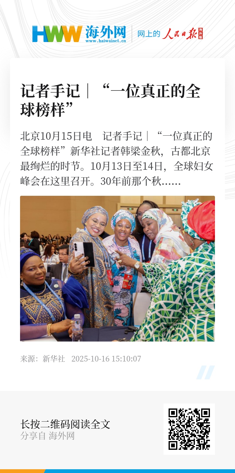 新华社北京10月15日电 记者手记|“一位真正的全球榜样”