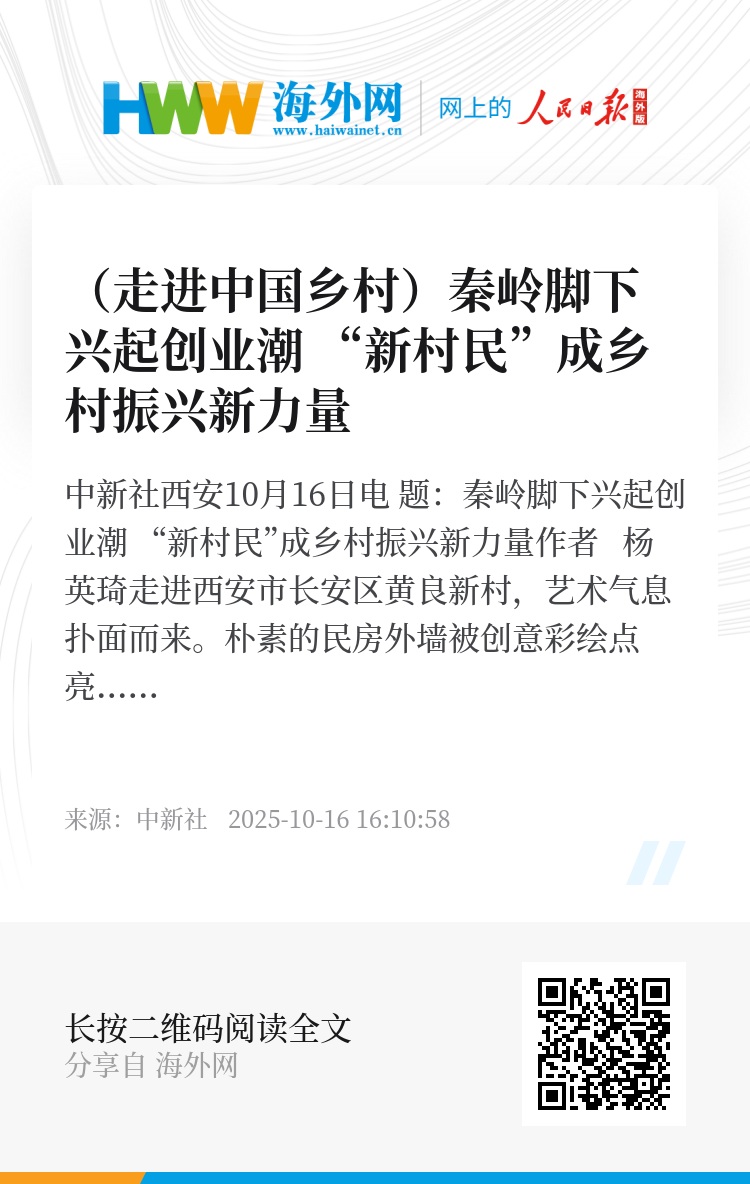 中新社西安10月16日电 题:秦岭脚下兴起创业潮 “新村民”成乡村振兴新力量