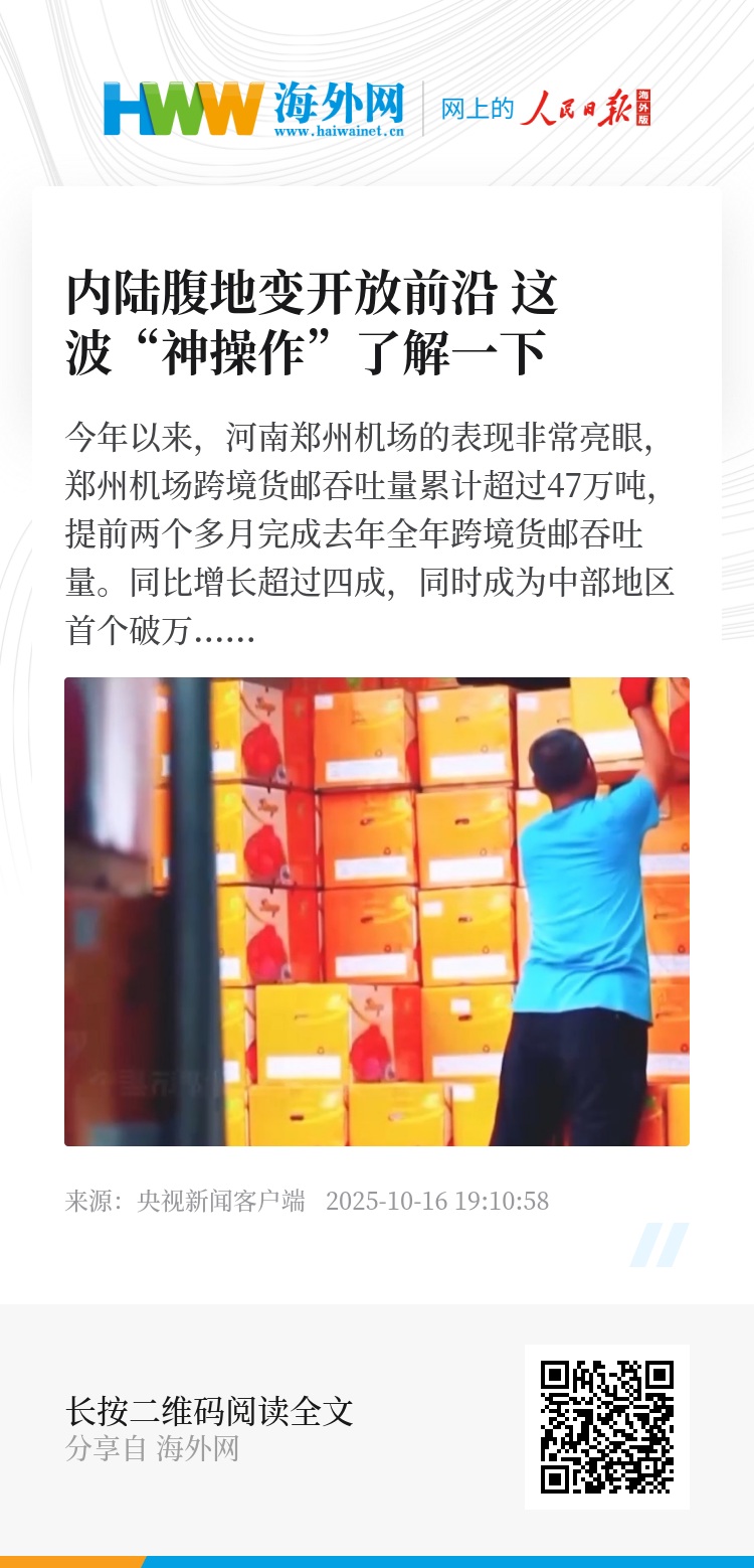 今年以来,河南郑州机场的表现非常亮眼,郑州机场跨境货邮吞吐量累计超过47万吨,提前两个多月完成去年全年跨境货邮吞吐量。同比增长超过四成,同时成为中部地区首个破万架次的航空口岸。