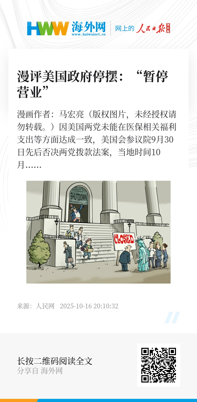 美国政府陷入“关门”僵局,根本原因在于两党政治斗争不断升级,其内部政治极化愈演愈烈。若美国政客总是根据自己的利益而非民众利益做出决策,美国两党相争的受害者只会是普通美国民众。(陈籽)