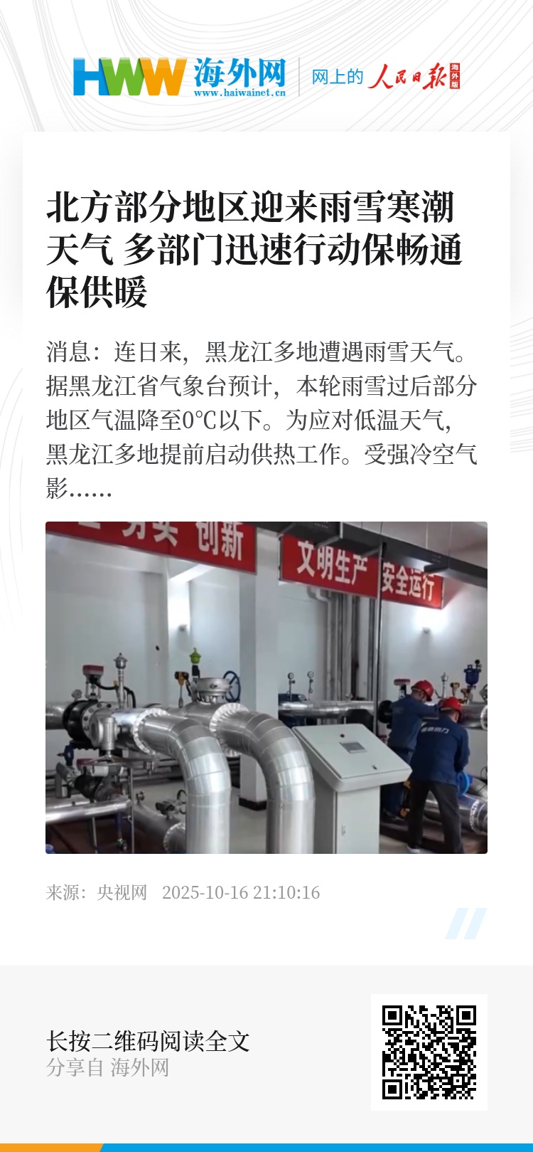 目前,乌鲁木齐市2025—2026供暖期已开启,乌鲁木齐热力(集团)有限公司依托智慧供热系统,降温前上调参数,保障71万户居民供暖。
