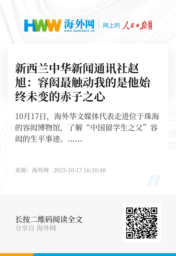 10月17日,海外华文媒体代表走进位于珠海的容闳博物馆,了解“中国留学生之父”容闳的生平事迹。