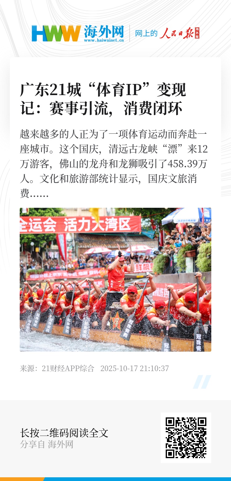 这种生态化思路,早有政策铺路。2021年《广东省文化和旅游发展“十四五”规划》就明确鼓励各地打造南澳冲浪、清远漂流、东莞篮球等特色体育旅游目的地。今年省体育局更出台通知,要求 “打造集吃住行游购娱于一体的体育赛事消费新场景”,广州近日推出“全运有礼”系列优惠,把体育赛事与民生消费直接挂钩。
