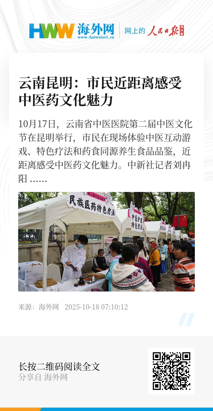 10月17日,云南省中医医院第二届中医文化节在昆明举行,市民在现场体验中医互动游戏、特色疗法和药食同源养生食品品鉴,近距离感受中医药文化魅力。中新社记者刘冉阳 摄 图源:视觉中国