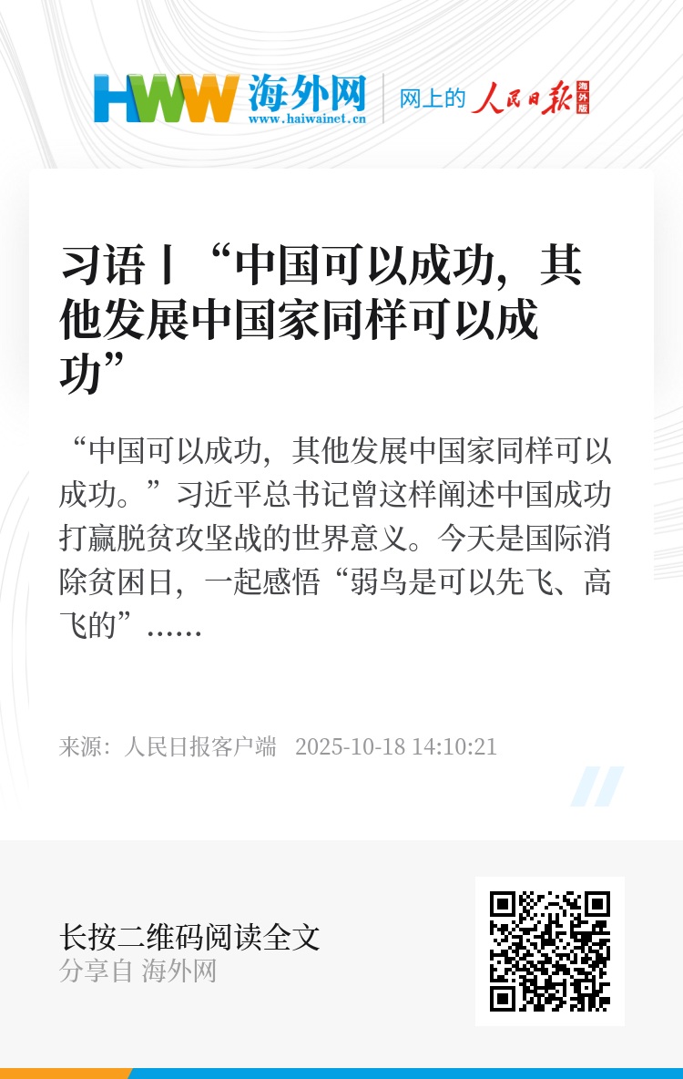 “中国可以成功,其他发展中国家同样可以成功。”习近平总书记曾这样阐述中国成功打赢脱贫攻坚战的世界意义。今天是国际消除贫困日,一起感悟“弱鸟是可以先飞、高飞的”背后的中国智慧、中国担当。