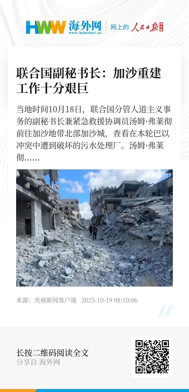 汤姆·弗莱彻表示,加沙城经历了毁灭性的打击,重建工作十分艰巨。