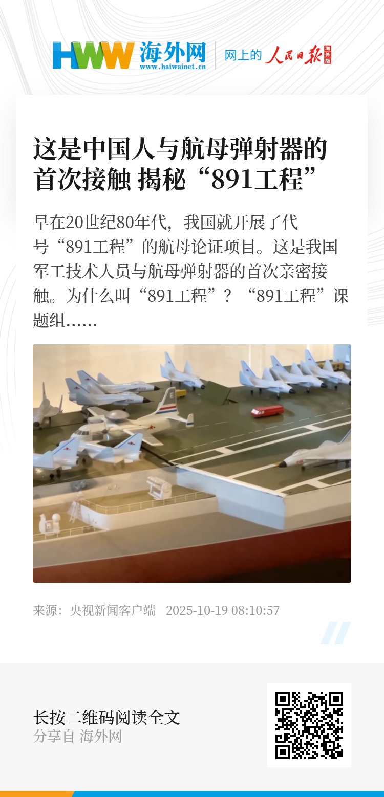 早在20世纪80年代,我国就开展了代号“891工程”的航母论证项目。这是我国军工技术人员与航母弹射器的首次亲密接触。