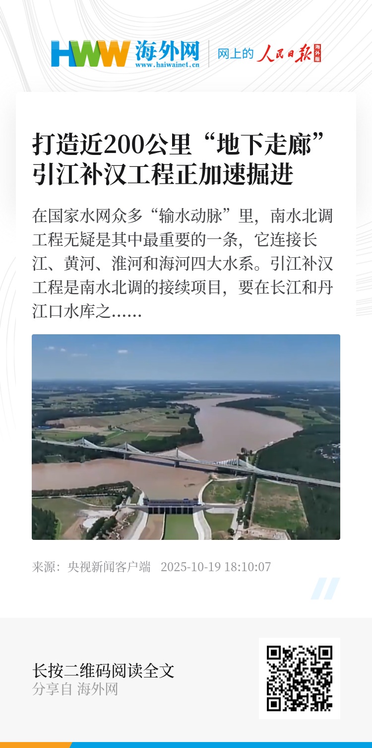 在国家水网众多“输水动脉”里,南水北调工程无疑是其中最重要的一条,它连接长江、黄河、淮河和海河四大水系。引江补汉工程是南水北调的接续项目,要在长江和丹江口水库之间,挖一条近200公里长的“地下走廊”,从地下百米深处“穿江而过”。建成后,长江水就能顺着这条通道,自动流进丹江口水库,每年能补30亿立方米水。