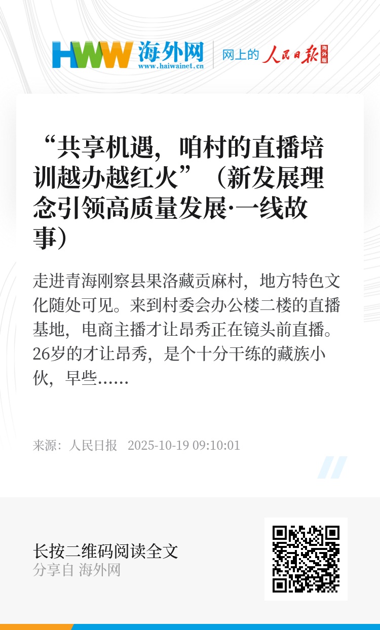 去年,刚察县争取相关发展资金,在果洛藏贡麻村搭建起了电商直播基地。才让昂秀带着乡亲们组建起直播团队。牧民跃跃欲试,纷纷尝试新技能——镜头前能说会道,幕后策写一体。“共享机遇,咱村的直播培训越办越红火。”才让昂秀说。