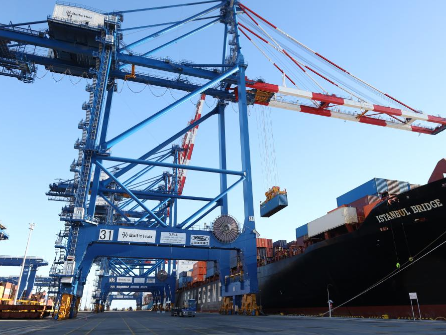 10月19日,从中国宁波舟山港出发的中欧北极快航航线首艘货船抵达波兰北部格但斯克港。新华社记者 崔力 摄