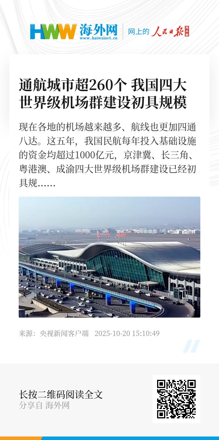 现在各地的机场越来越多、航线也更加四通八达。这五年,我国民航每年投入基础设施的资金均超过1000亿元,京津冀、长三角、粤港澳、成渝四大世界级机场群建设已经初具规模。国内航线达到4513条,通航城市超260个。