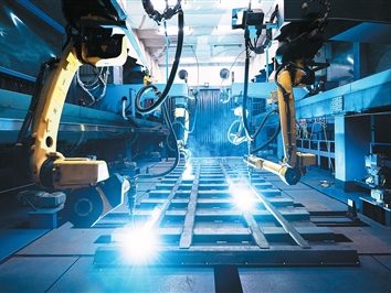 工业机器人在中国重汽集团湖北华威专用汽车有限公司自卸车智能化生产线上作业。