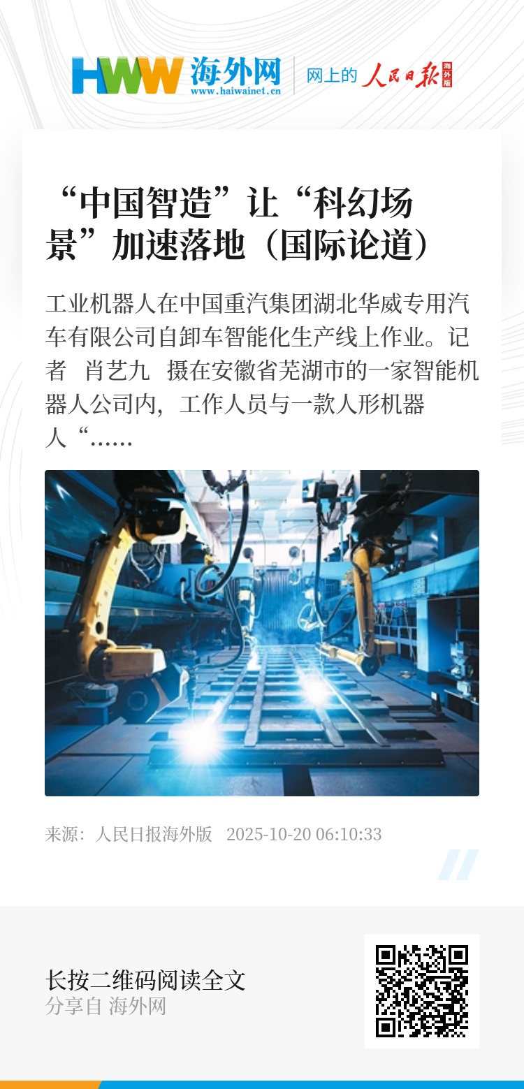阿根廷“报告亚洲”网站分析认为,“中国制造”正转型为高科技创新的代名词。中国制造业在人工智能、电动汽车、可持续能源等领域的创新生态日益完善,推动这一形象持续升级。