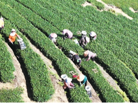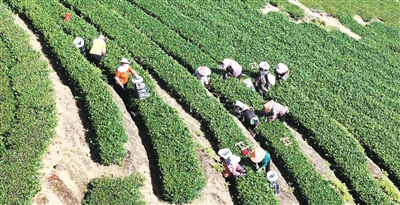 近日,福建省泉州市安溪县的铁观音秋茶迎来采摘旺季。当地茶农们抢抓晴好天气采摘鲜嫩茶青。图为该县感德镇茶农忙着采摘铁观音秋茶。