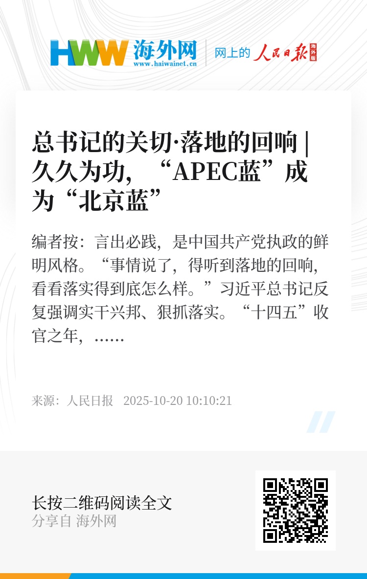 久久为功,必有回响。“APEC蓝”终成持久的“北京蓝”。