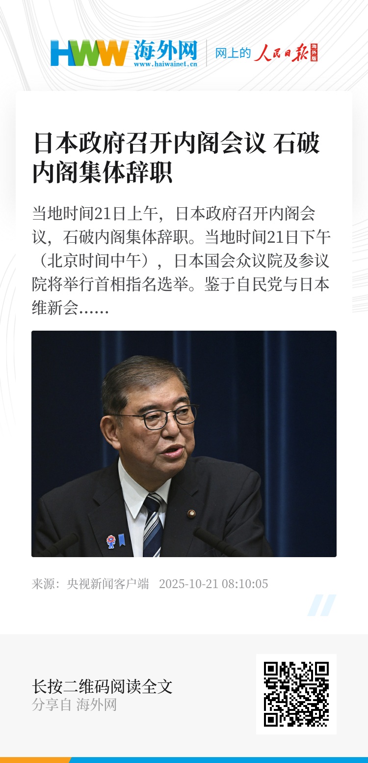 当地时间21日上午,日本政府召开内阁会议,石破内阁集体辞职。
