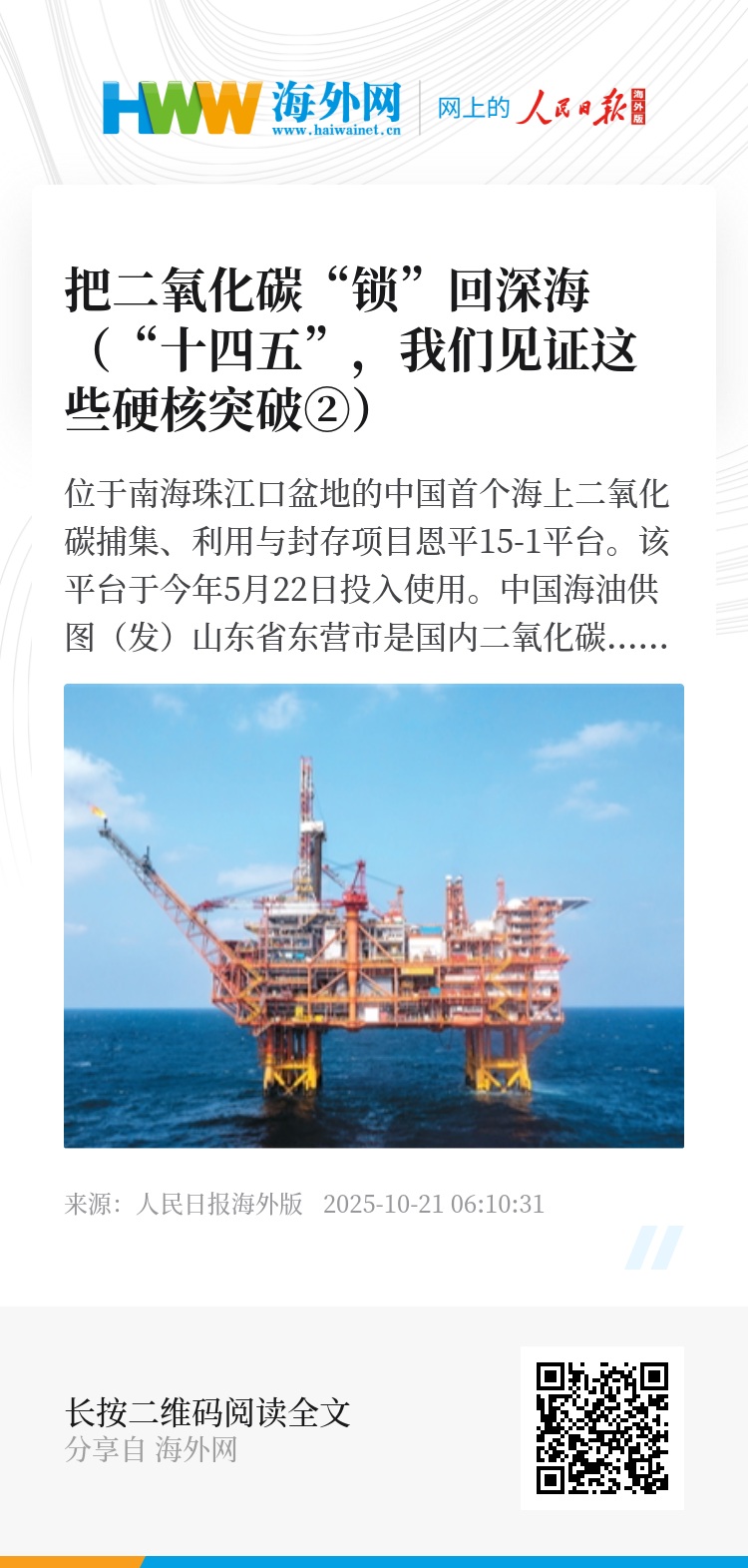 这是什么概念?据测算,减少的碳排放量相当于植树220万棵,也标志着中国海上二氧化碳封存技术、装备和工程能力已臻成熟。“十四五”以来,中国加速推进海上二氧化碳封存与利用,系列示范项目加速落地,打开绿色发展空间。